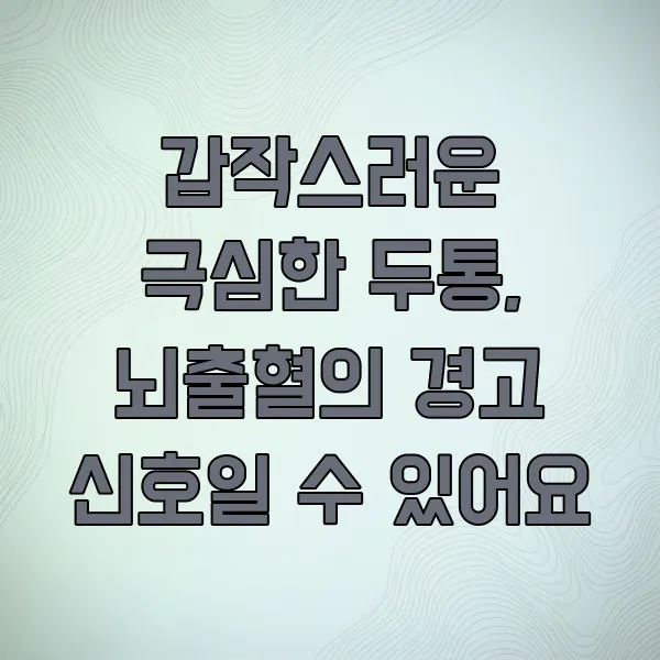갑자기 찾아오는 극심한 두통, 혹시 '뇌 속 폭탄'이라 불리는 지주막하 출혈은 아닐까요? 어떤 증상이 나타나는지, 어떻게 대처해야 하는지 미리 알아두는 것이 중요해요. 이 글에서 지주막하 출혈의 주요 증상과 확인해야 할 사항들을 쉽고 자세하게 알려드릴게요!