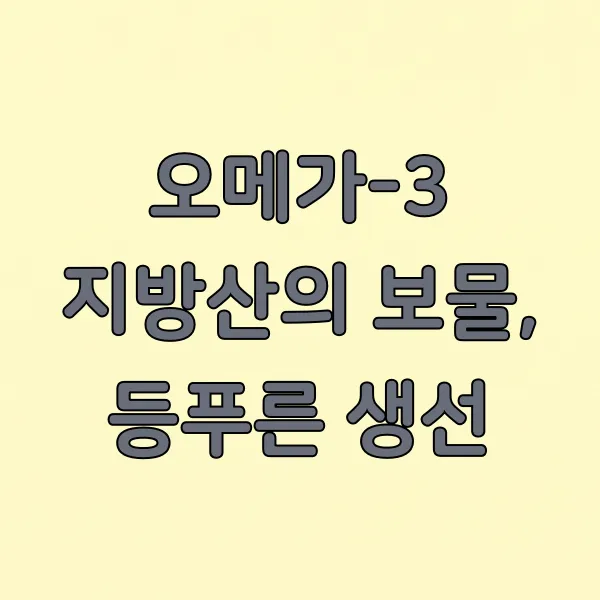 고등어, 연어, 삼치 같은 등푸른 생선에는 혈관 건강 에 좋은 오메가-3 지방산 이 듬뿍 들어있어요. 이 오메가-3는 혈압을 조절하는 데 도움을 줄 뿐만 아니라, 염증 완화에도 효과적이랍니다.