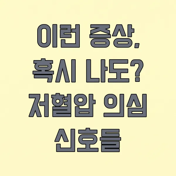 사실 저혈압은 별다른 증상 없이 지나가는 경우도 있지만, 몸에서 보내는 신호들을 잘 알아차리는 것이 중요해요.